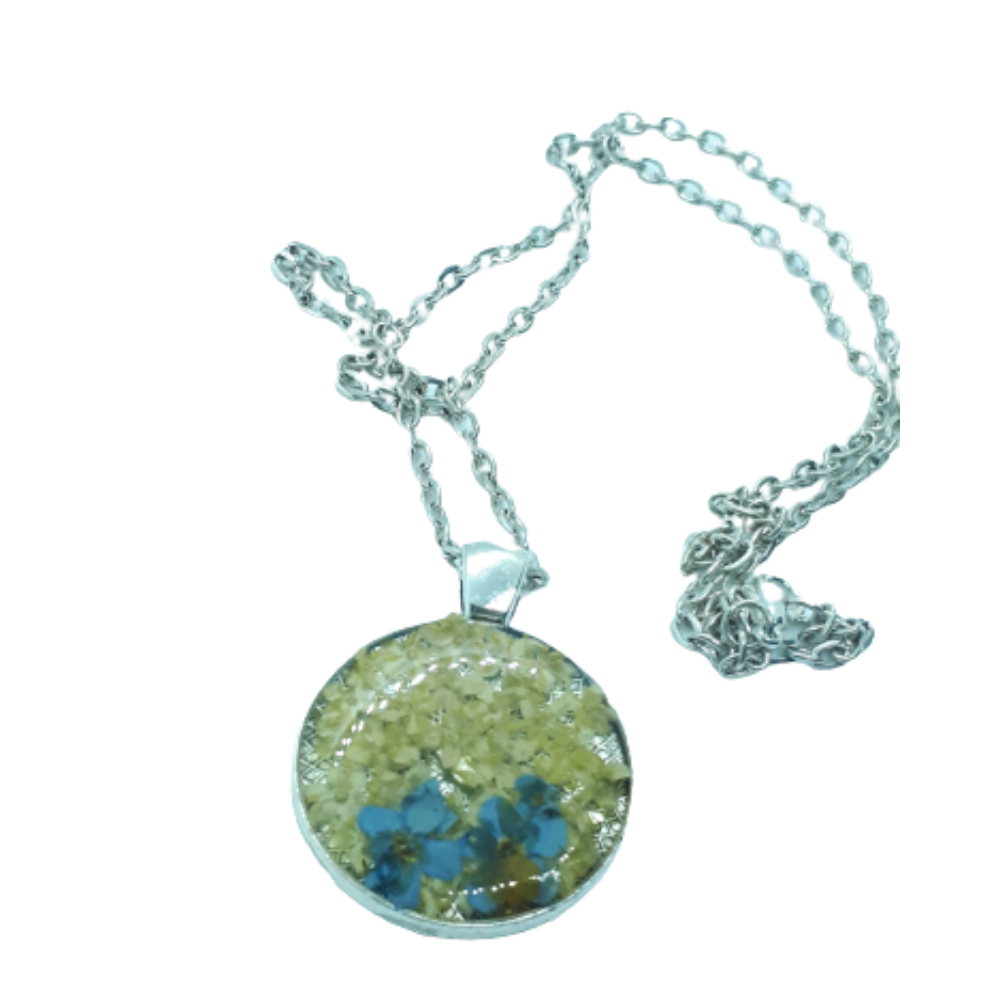 Duurzaam en tijdloos: Epoxyhars beschermt de delicate bloemen tegen slijtage, waardoor je lang kunt genieten van je sieraad.